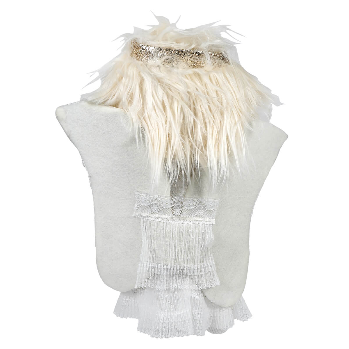 Size: 19x12x8"Material: Porcelain, Fabric, Ribbon, Fiber Optics & LED Lights - Comes Boxed