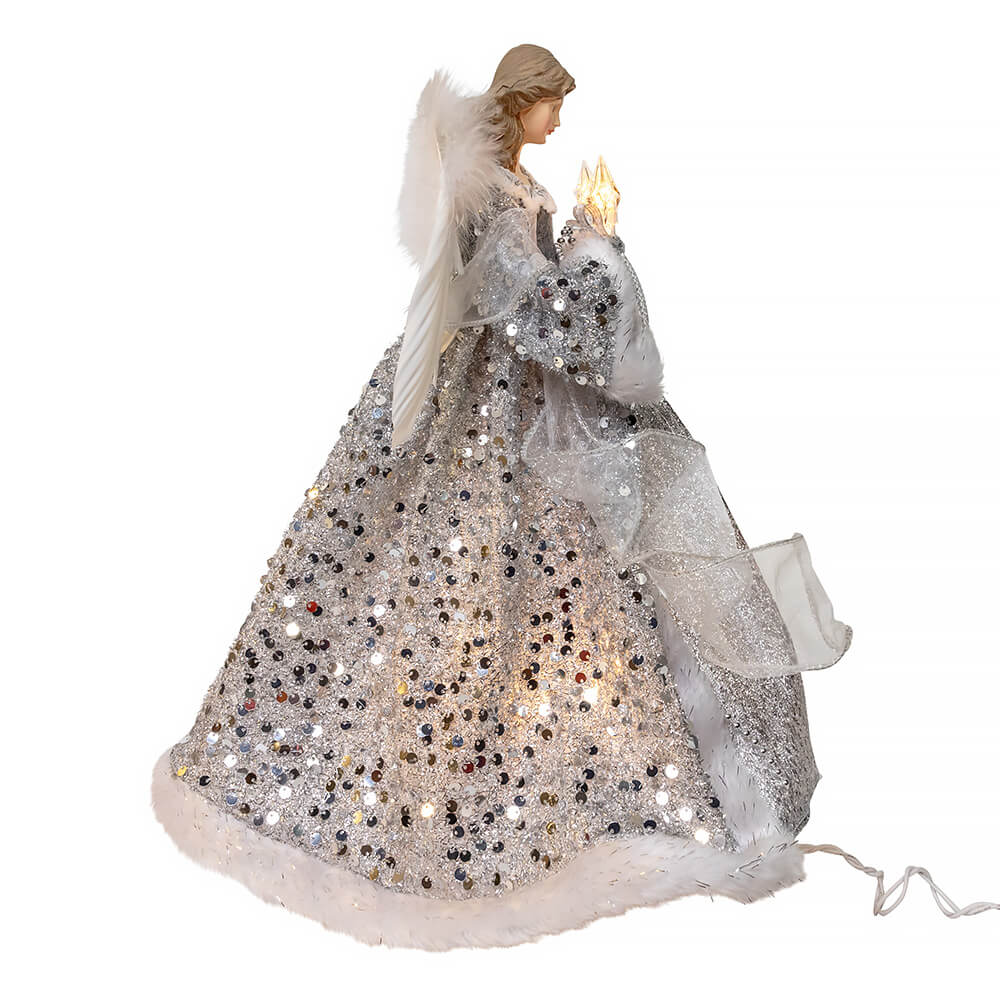 70-Light Multicolored Fiber-Optic LED White & Silver Angel Treetop