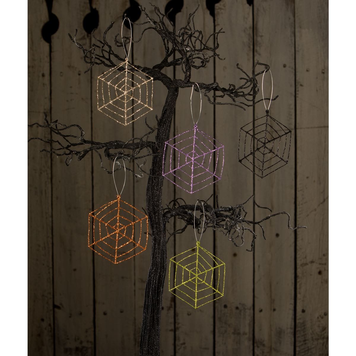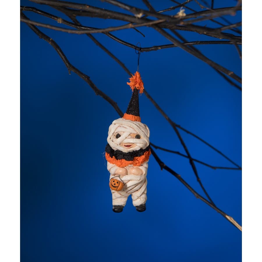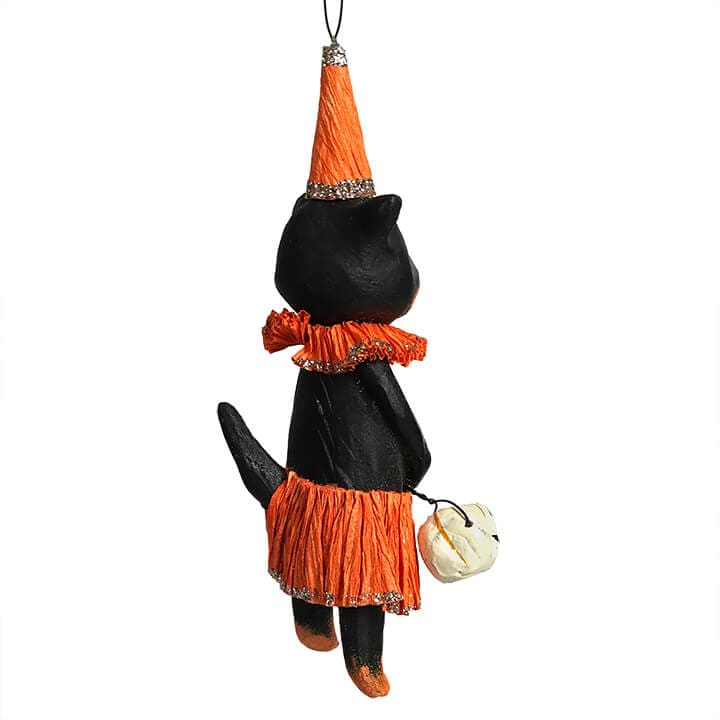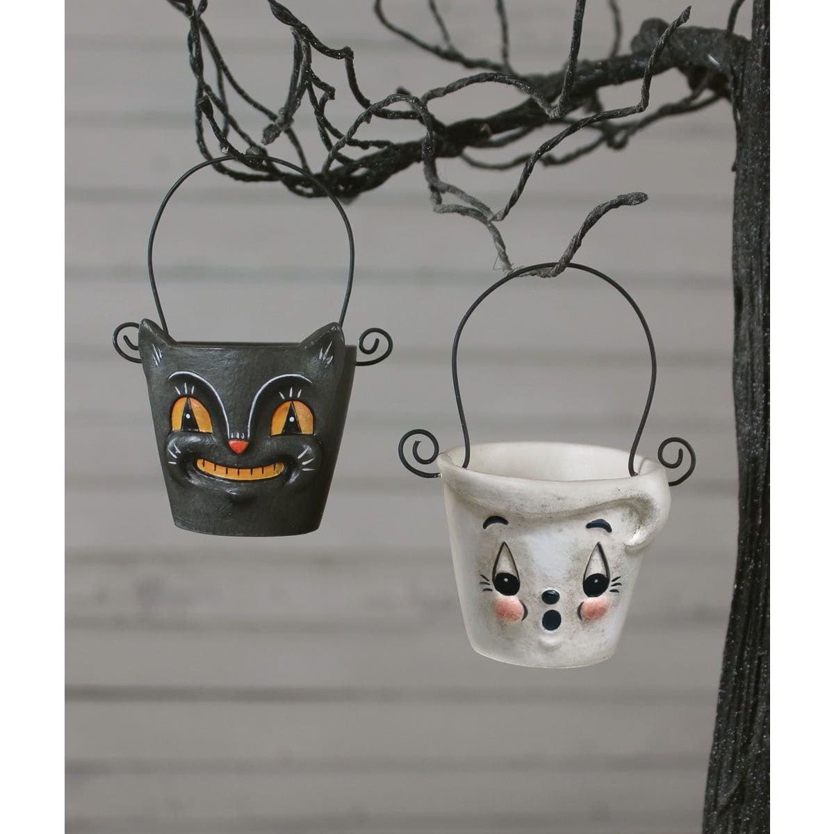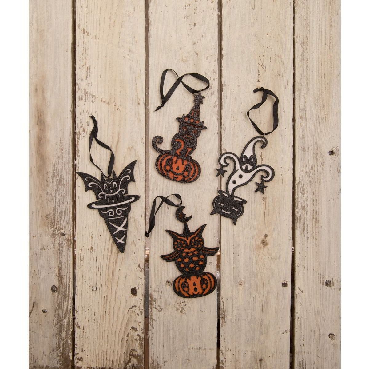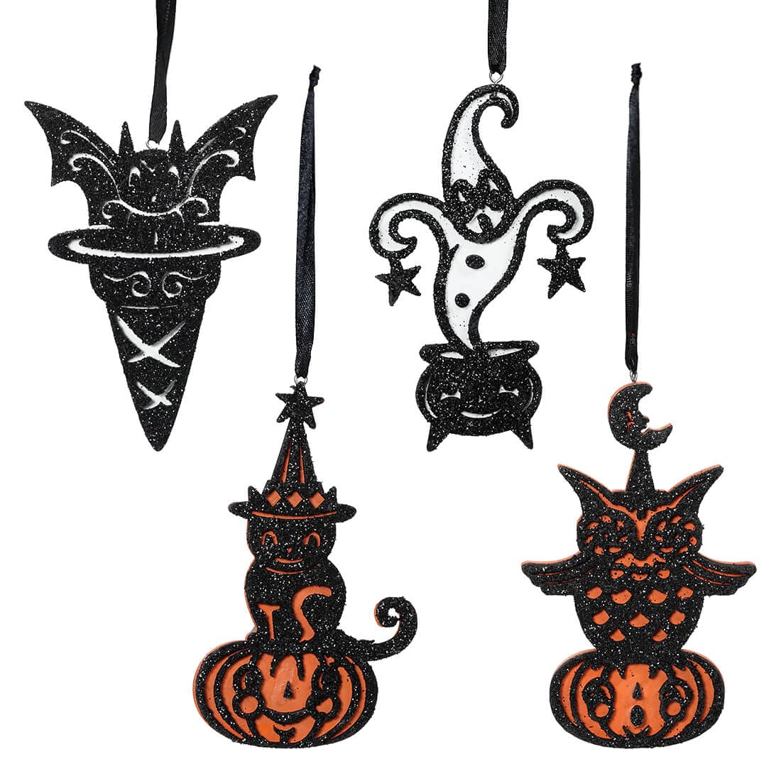 Bethany Lowe has gotten so creative using lots of vintage images as inspiration for ornaments that you can find just about any Halloween theme or figure styled ornaments to decorate your Halloween tree! The artists that design for her have especially come up with clever ornaments made of everything from glass to resin to paper mache that make your tree festive and fun for the holiday. Don’t forget to top your tree with a paper party hat adorned with festooning and vintage images, then finish it off by draping garlands around the tree!