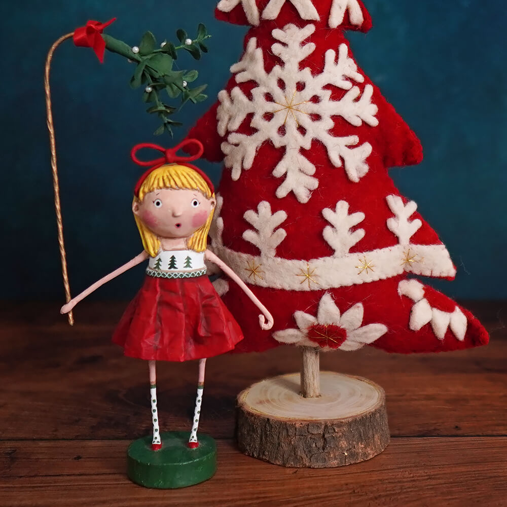 Whether you’re a collector of Lori Mitchell’s whimsical characters or just looking for something unique to brighten up your home, this little figure is sure to bring smiles and maybe even a few kisses to your holiday gatherings. This figure is a dash of lighthearted holiday spirit that’s ready to mingle in your home. Wherever she stands, she’s sure to inspire warmth, laughter, and maybe a bit of romance.