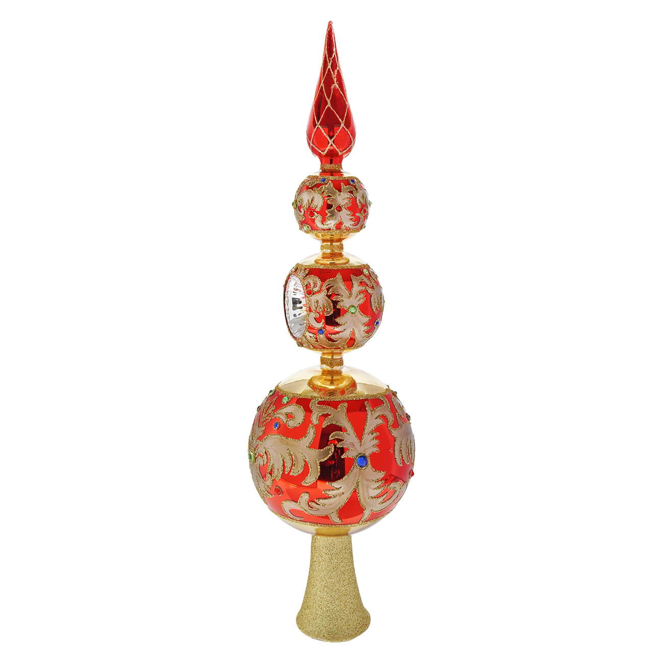 Our collection showcases an array of tree toppers in diverse shapes, colors, and sizes, ensuring you find the perfect piece to complement your holiday theme. From classic stars and angels to modern and whimsical designs, our toppers cater to a wide range of decorating styles. Plus, they're no longer exclusive to glass; you'll discover options in detailed resin, charming Santa figures, and more.