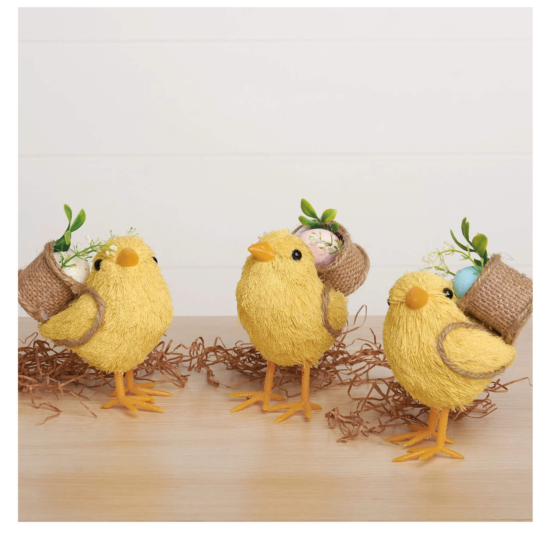 Whether you are decorating a full Easter table display, a sideboard near your dining table or a kitchen nook, we have the Easter and spring tabletop decor for you! We have large paper mache bunnies or chicks to anchor the scene and lots of figures, boards, Easter grass and of course decorated eggs to let your imagination run wild! If you start with an Easter basket, you can fill it with lots of eggs and figures standing in the eggs. So cute! One of our favorite displays is a lighted Easter egg tree surrounded by lots of cherished figures. You won't be sorry no matter what you choose, especially when your family comments about how festive it makes your home!