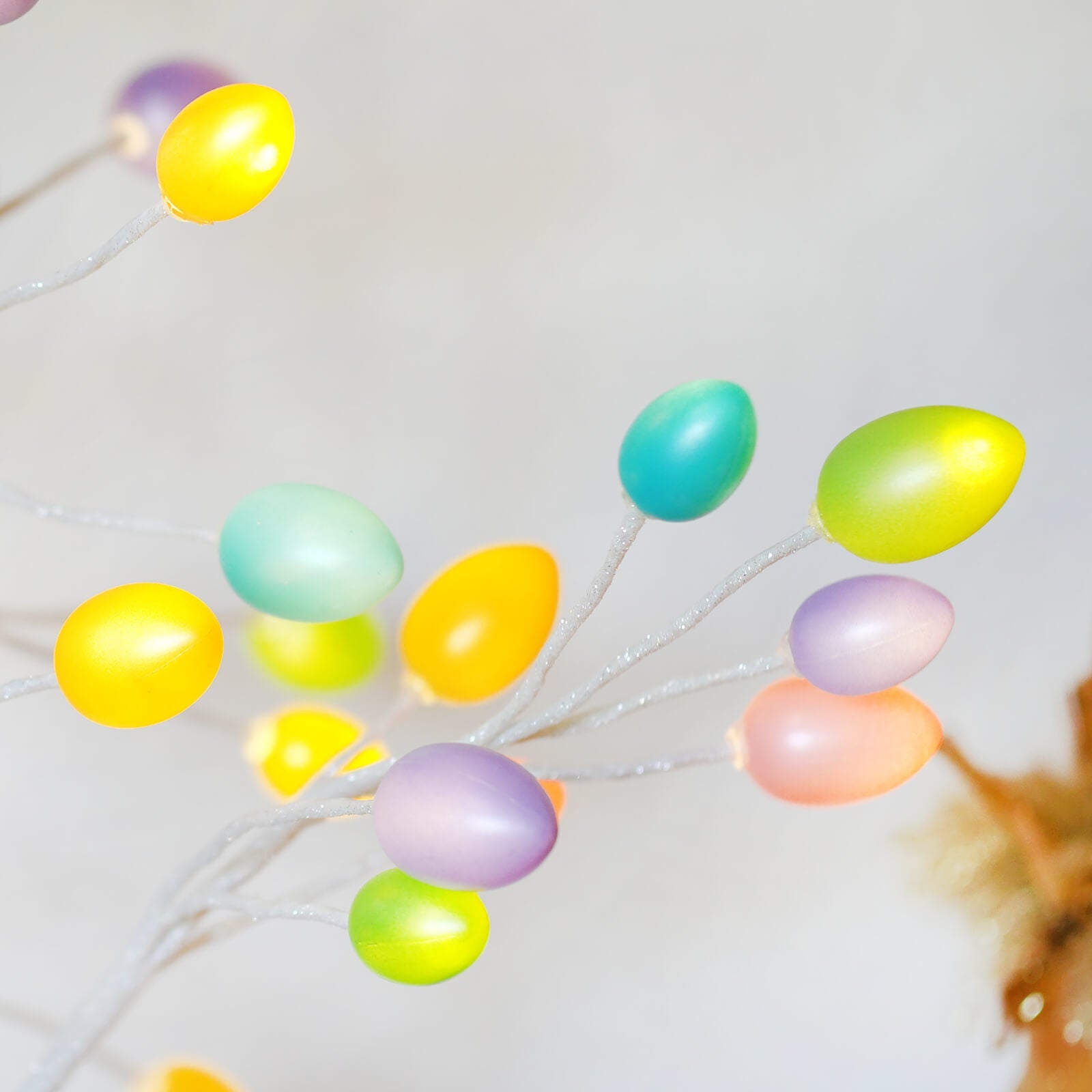 10" Pastel Blue, Yellow & Pink Flocked Bristle Easter Egg Trees Set/3