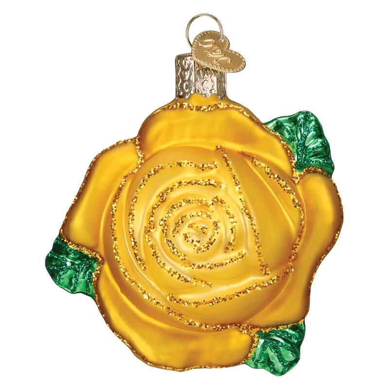 Give someone this yellow rose ornament as a sign of platonic love, happiness, friendship and pure joy. Roses are one of the most beautiful flowers found in nature and this yellow rose ornament will be the stand out on your holiday tree or a garden themed tree. Even though roses expresses promise, hope and new beginnings, it is also contrasted by the sharp thorns that line its stems. The thorns protect the delicate bush and allow it to share its beauty.