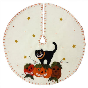 Introducing the Black Cat On Pumpkins On White Tree Skirt by New World – where Halloween charm meets purr-fection! This bewitching creation is not just a tree skirt; it's a portal to a whimsical world where black cats bring luck, pumpkins tell tales, and stars shimmer with secrets.