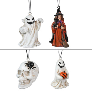 Resin Halloween Ghosts, Skull & Witch Ornaments Set/4