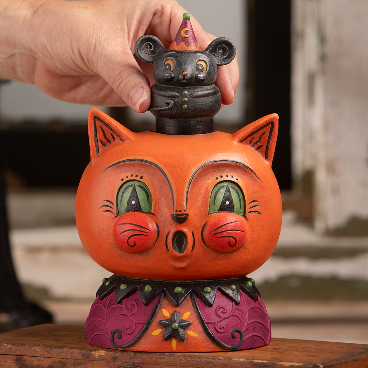 Over the years, Johanna has expanded her creative horizons beyond paper pulp, crafting figures in resin and ceramic, each capturing the essence of Halloween in its own unique way. These new mediums allow collectors to explore different textures and styles while still reveling in Johanna's inimitable artistic vision.