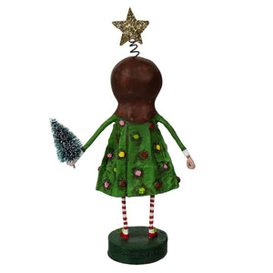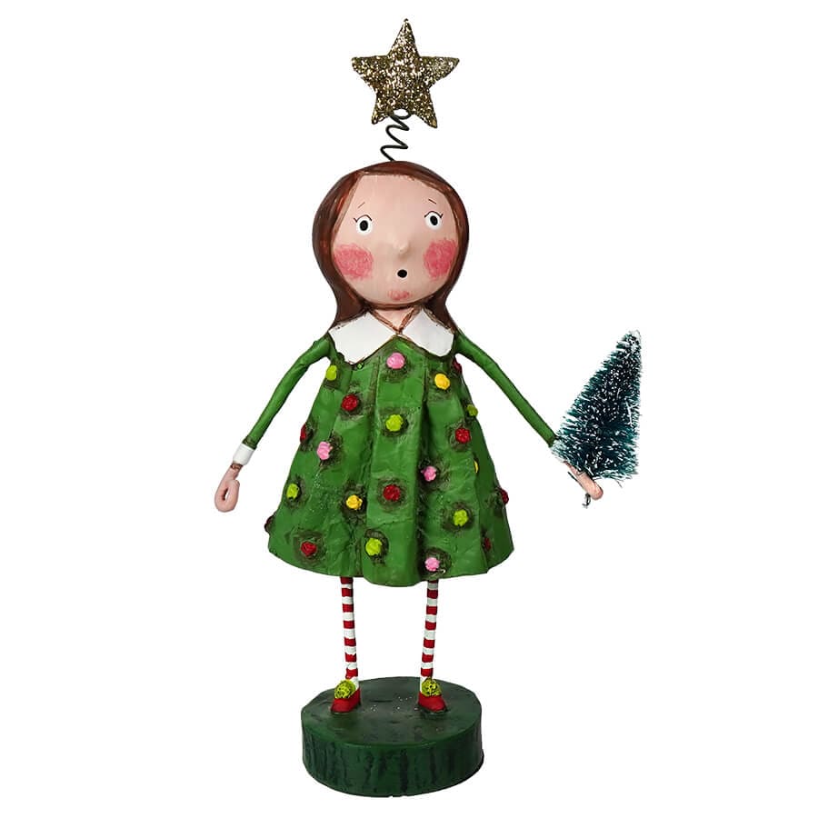 But it was the mini wintry evergreen she held in her hand that truly completed the scene. Decorated with tiny ornaments and a shimmering golden star, it resembled a miniature Christmas tree. The green base on which Chrissy Christmas stood served as a tree stand, showcasing her as the centerpiece of holiday merriment.