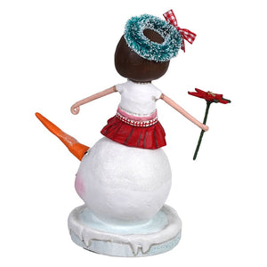 As Merry sat upon the snowman's head, a feeling of magic surrounded her. She posed with grace and poise, as if waiting for her Christmas portrait to be taken. The snowman beneath her beamed with delight, feeling honored to have such a lovely companion.