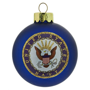An official U.S. Navy Logo ornament, complete with the eagle and shield seal. This glass ornament with decals is perfect for an Navy military veteran or for someone you know in the Navy!