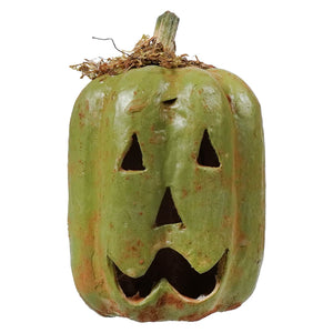 Bring home a touch of autumn magic with the Green Tiny Oval Carved Pumpkin by Rags A. Muffin Junction. Because nothing says "fall is fabulous" quite like a pumpkin that’s small in size but big on charm!