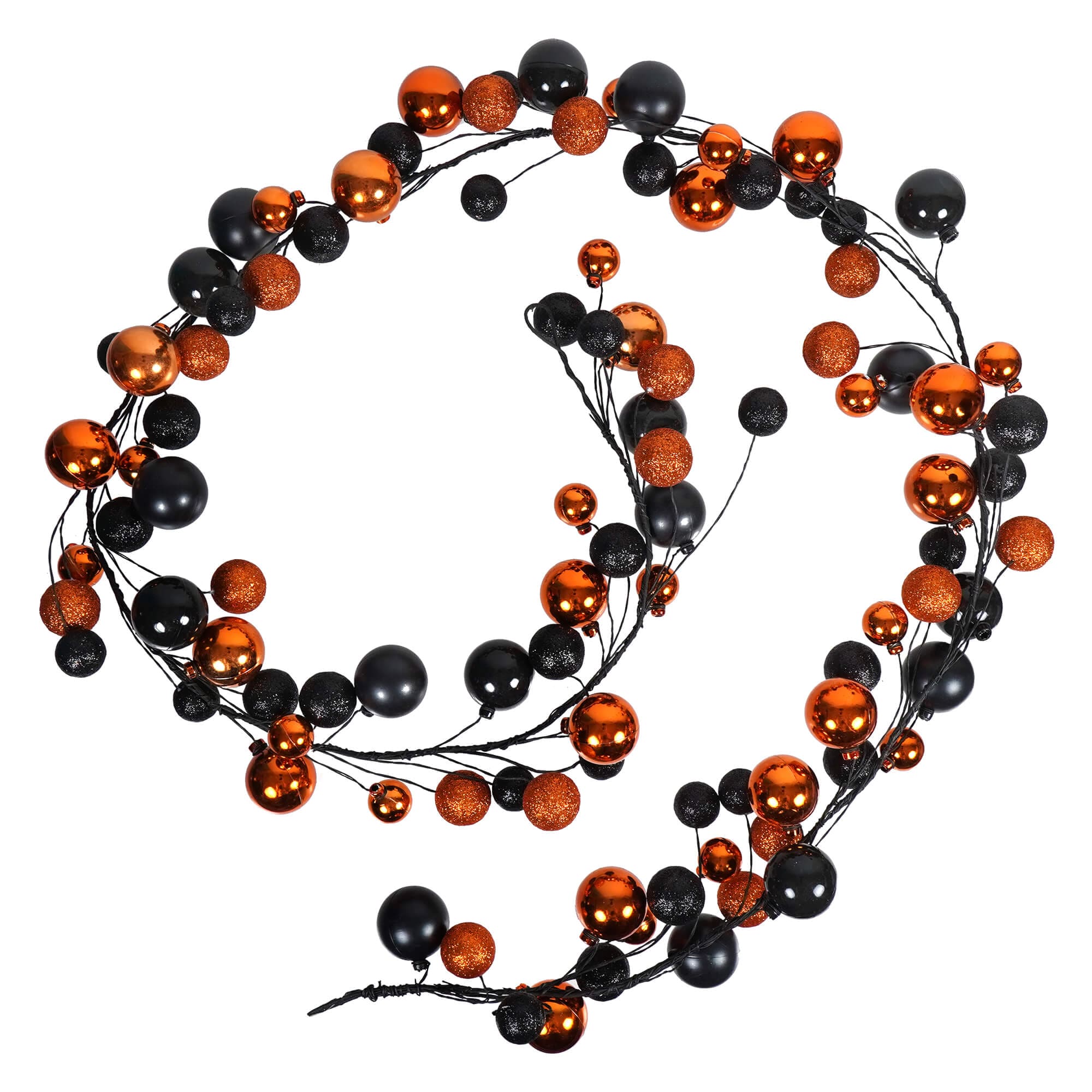 The orange and black balls, artfully wired onto branches, create a mesmerizing effect that is perfect for adding a touch of spooky elegance to your Halloween festivities. Whether you drape it over a door or picture frame, let it cascade from the edge of your mantel, or hang it to welcome guests at your front door, this garland is guaranteed to steal the show.