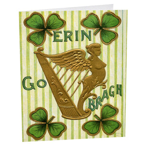 Celebrate Irish pride and tradition with the Erin Go Bragh Set of 5 Greeting Cards. These beautifully designed cards feature a stunning vintage illustration of a golden harp with the iconic "Erin Go Bragh" banner, surrounded by four lush green shamrocks. Based on classic postcards by celebrated artists like Ellen Clapsaddle, this design embodies the spirit of Irish heritage, making it perfect for St. Patrick’s Day greetings or any time you want to send a little luck and well-wishing to friends and family.