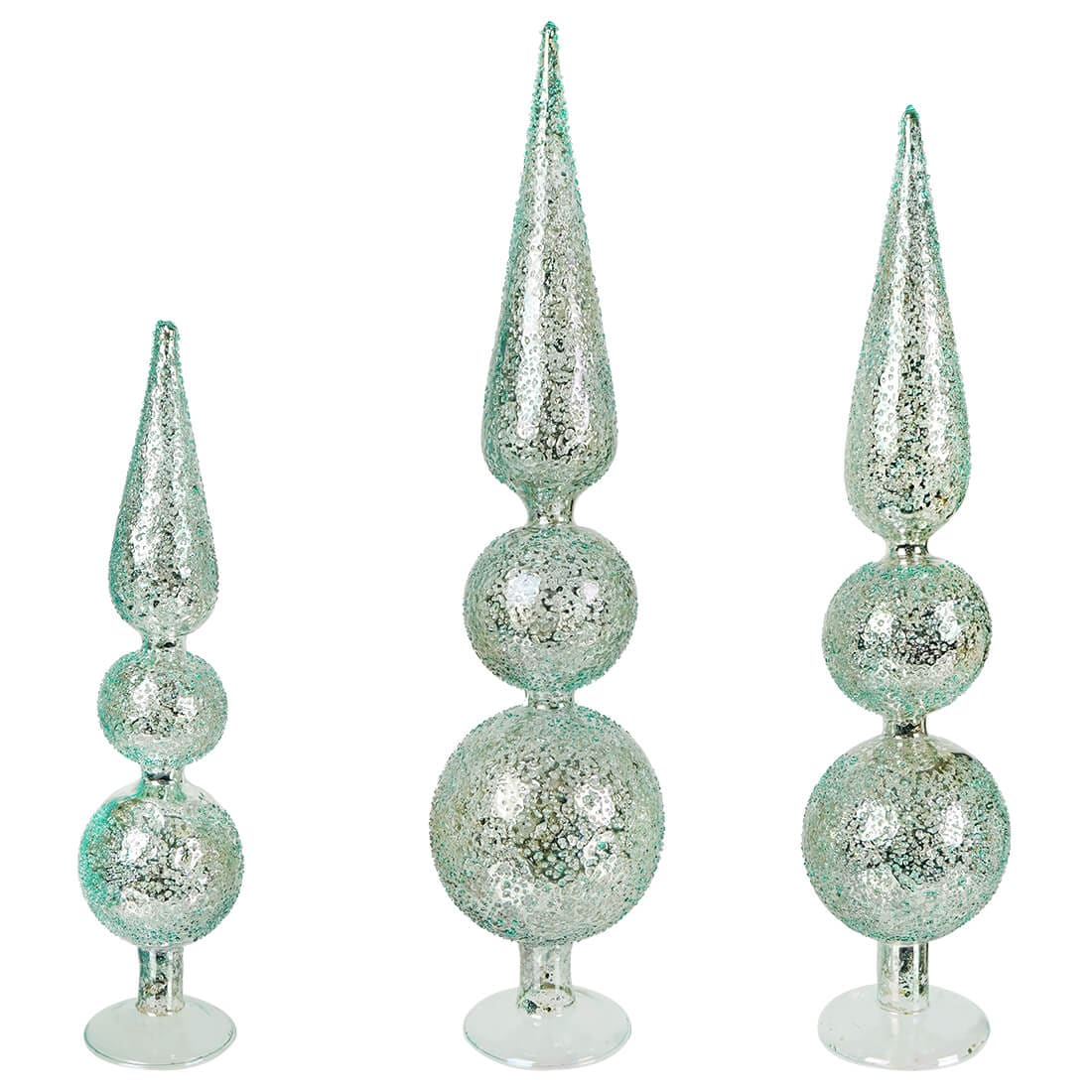 Blown glass finials for the top of your tree are so elegant! They are stunningly beautiful and draw your eye to the top of the tree. They come in so many shapes, sizes and colors that you will have a hard time choosing, so why choose! You can always add them to a mantel display too!