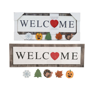 So, why settle for static when you can have dynamic? Elevate your home's entrance game with the Wood Welcome Sign With Holiday Magnets Set by Transpac. It's not just a sign; it's a holiday herald, a festive fiesta, and a jolly journey through the seasons. Get yours now and let the magnetic magic begin!