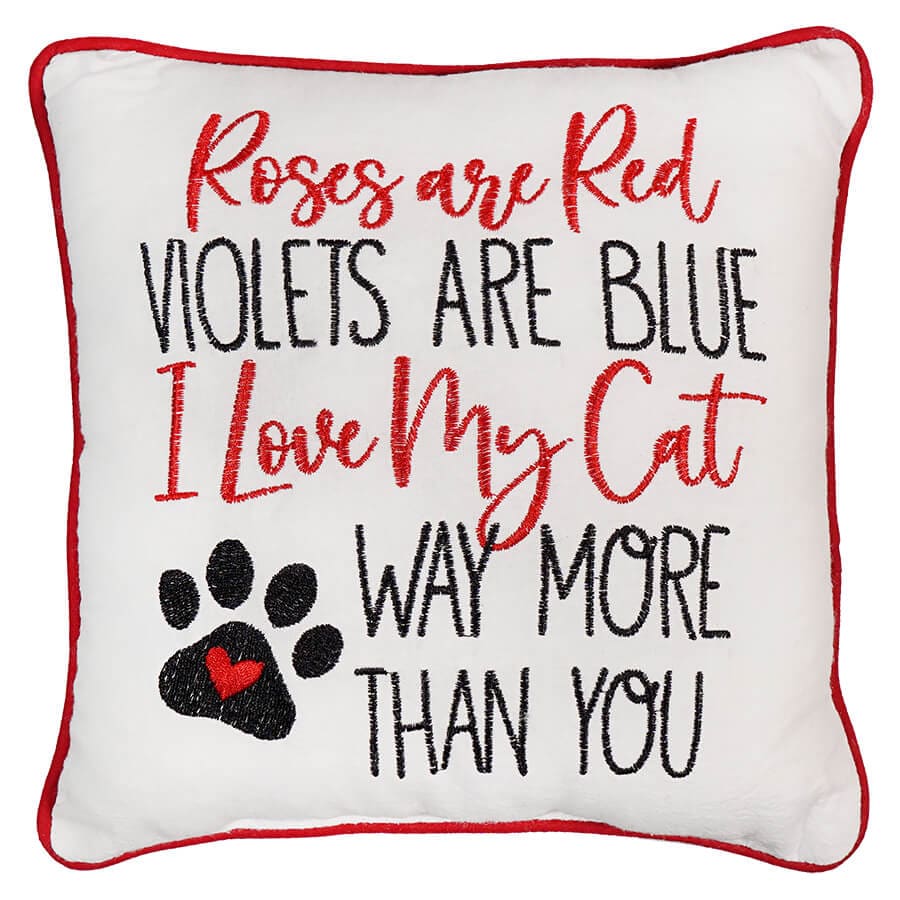 Declare your feline devotion with the Love My Cat More Pillow by C&F Home – because when it comes to matters of the heart, whiskers win every time! This embroidered masterpiece is not just a pillow; it's a purr-sonal declaration of love for your four-legged overlord.