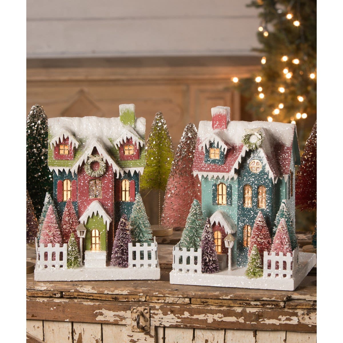 Bethany Lowe, Ragon House and Cody Foster, to name a few, love to design things that harken back to the vintage past. These vintage style putz houses for Christmas have taken on a renewed life of their own. They are now designed in so many different themes, using traditional styles and contemporary colors to fit into today’s decorating palette. From traditional village houses, churches and cottages to fabulous manor houses and townhomes, there's a shape, color and size for every collection. They are perfect for decorating a mantel or sideboard, but they look especially festive under your tree surrounded by snowy batting and bottle brush trees. Collectors can’t wait to purchase new houses year after year, so don’t wait. They sell out fast!