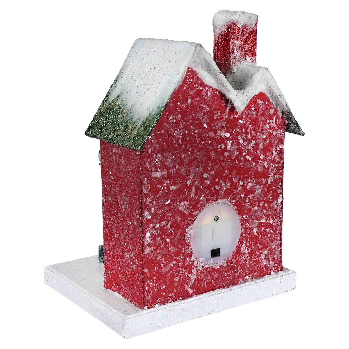 Size: 8.25x6.25x9.5"Material: Cardboard, MDF, Bottle Brush, Plastic, Glitter & Electrical Components