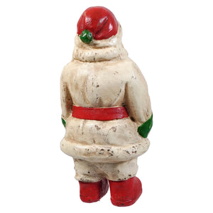 The 10.25" Red, Green, & White Vintage Santa by Ragon House arrives ready to stroll right into your holiday décor like he owns the place—and honestly, with an outfit this good, who’s going to stop him? Dressed in a bright white coat belted in classic Christmas red, complete with a matching hat and shoes, he brings the charm of mid-century holiday cards to life. His green mittens pop against the snowy palette, giving him the look of someone who just finished expertly decorating a tree and is now on his way to congratulate himself with a cookie.