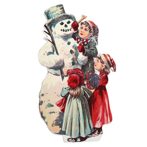 Capturing a moment of pure winter joy, the 10" Family Building Snowman Dummy Board brings the classic scene of a snowman coming to life into your home. This decoration, crafted from MDF and standing at ten inches tall, vividly portrays two children dressed in vintage winter apparel, adorning a cheerful snowman—a nostalgic nod to simpler times.