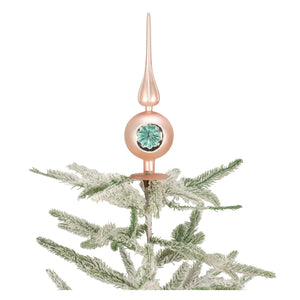 The 10" Pink Glass Tree Topper by Primitives by Kathy brings a burst of joyful color and retro charm to the peak of your Christmas tree. Designed in a classic finial shape, it immediately stands out with its vibrant pink glass that glows beautifully under tree lights. At the base sits a rounded ball featuring a teal indent—an eye-catching detail that feels delightfully vintage, as if it were plucked straight from a mid-century holiday display.