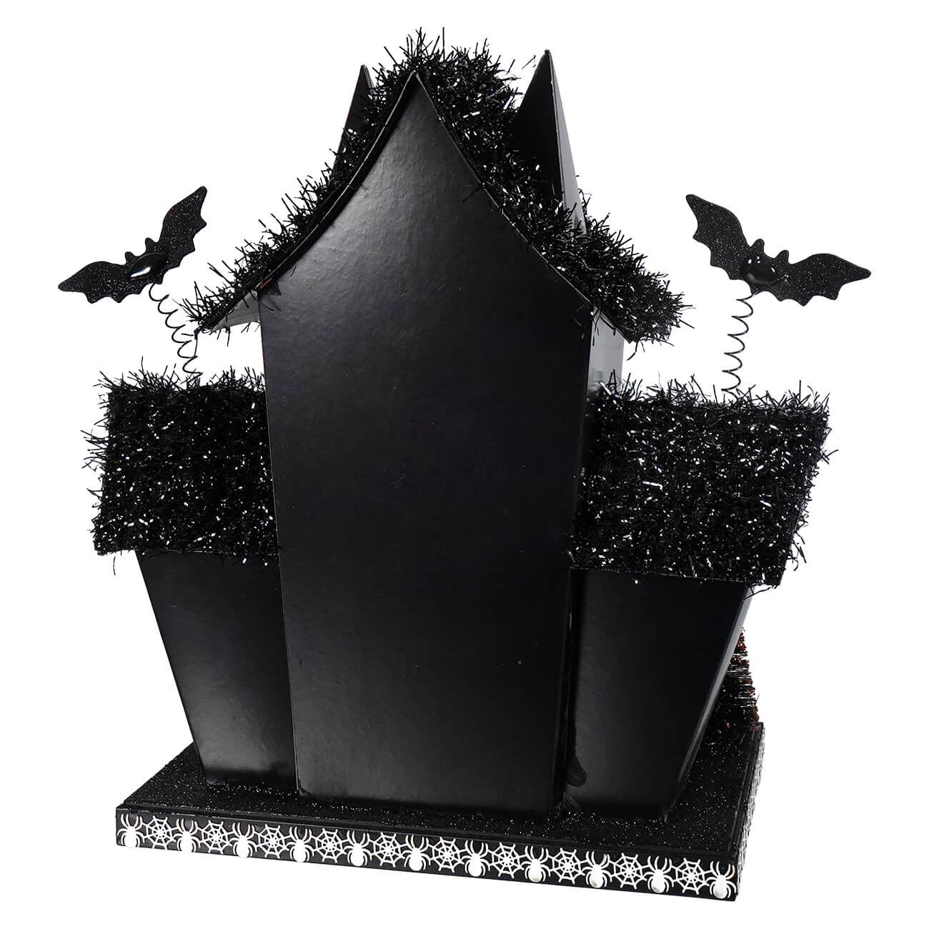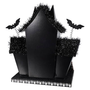 Silver accents and careful detailing make this house a standout addition to any haunted village, mantel, or tabletop display. With its bouncing bats, fang-framed entrance, and watchful owl rooftop, it’s equal parts eerie and endearing. Perfect for those who like their Halloween décor with a touch of humor and a flicker of fright, this little haunted house proves that even the smallest ghoulish abodes can make the biggest impression.