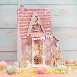 12.75" Lighted LED Pink Spring Tudor House With Timer