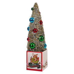 12" Retro Reindeer Gift Box With Ornamented Tree