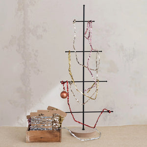 Neatly wound on a rustic kraft card, this garland is simple to measure, cut, and style exactly how you like—whether woven through your Christmas tree, draped along a mantel, or wrapped around banisters. The rich gold shimmer brings a classic holiday elegance that pairs effortlessly with any décor scheme.