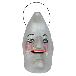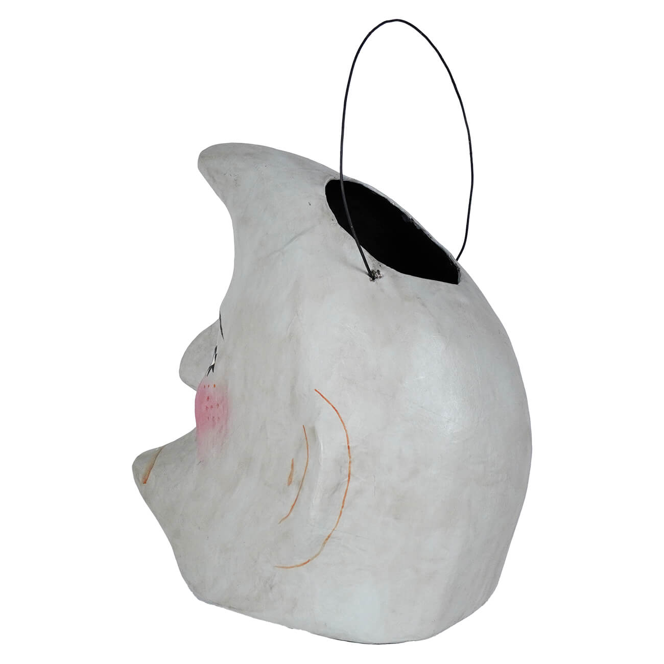 Crafted from paper mache and measuring 13 inches high (20" including the handle), this piece is made to be seen. Easy to hang, on walls, doors, shelves, or anywhere else that could benefit from a little lunar mischief. The curved profile and bold facial features keep it interesting even from a distance, and its color palette plays well with both cool tones and rich, dramatic backdrops.