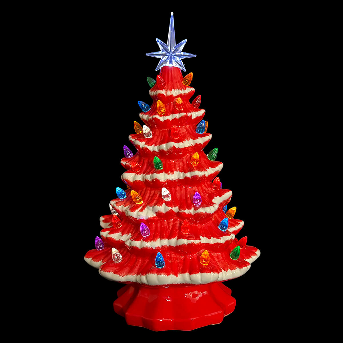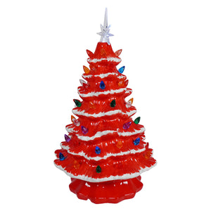 14.5" Large Lighted Red Ceramic Christmas Tree