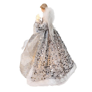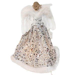 14" UL 10-Light Silver & Ivory Angel Tree Topper