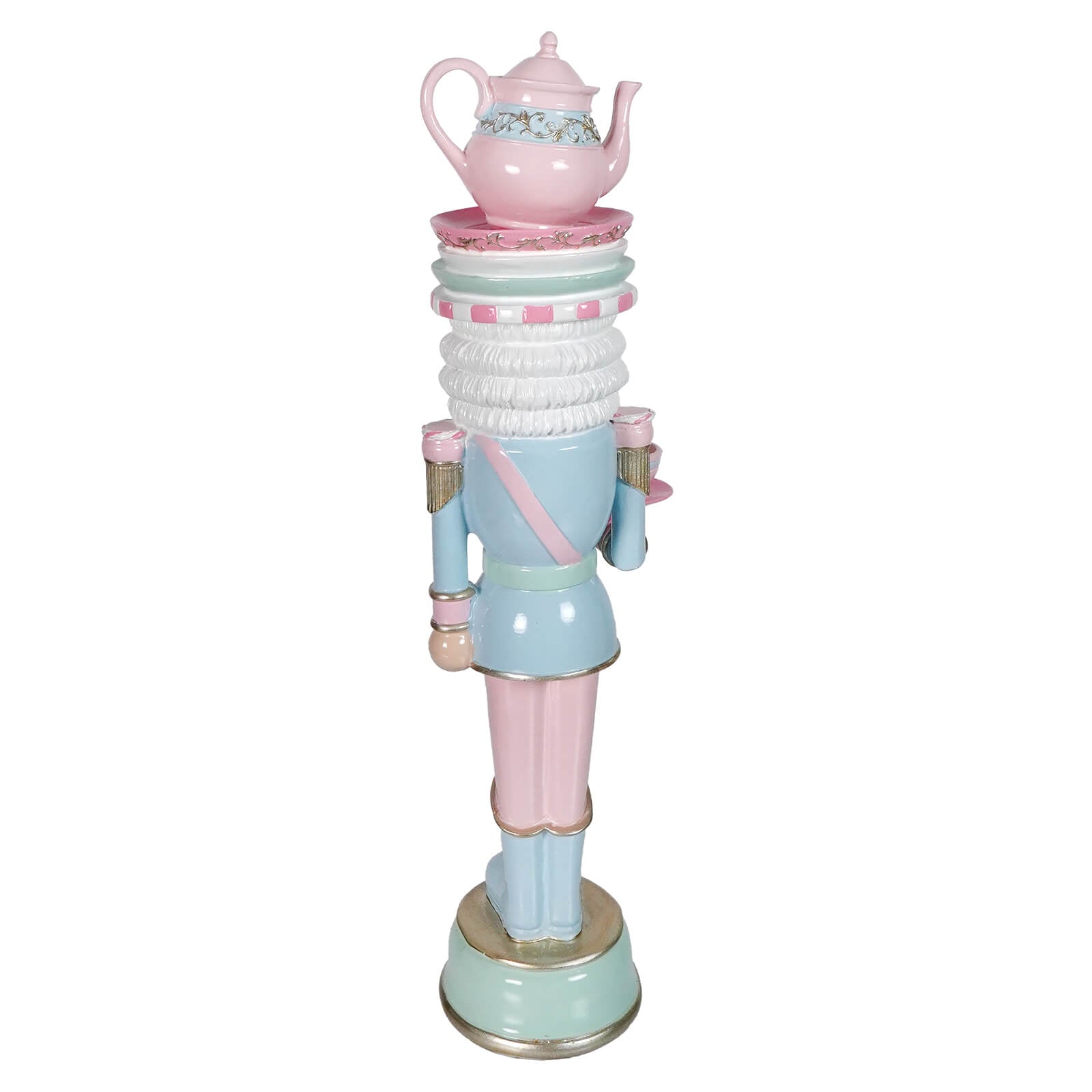 March to the beat of sweet sophistication with the 15.75" Pastel Resin Dessert Toy Soldier Balancing Teapot by Regency International — a teatime triumph of balance, charm, and sugar-coated style. Standing tall in a pastel blue and pink uniform, this dapper nutcracker is clearly off duty from the toy chest and fully committed to serving dessert in the most dramatic way possible.