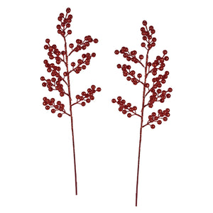 24" Red Glittered Cluster Berry Spike Spray Set/2