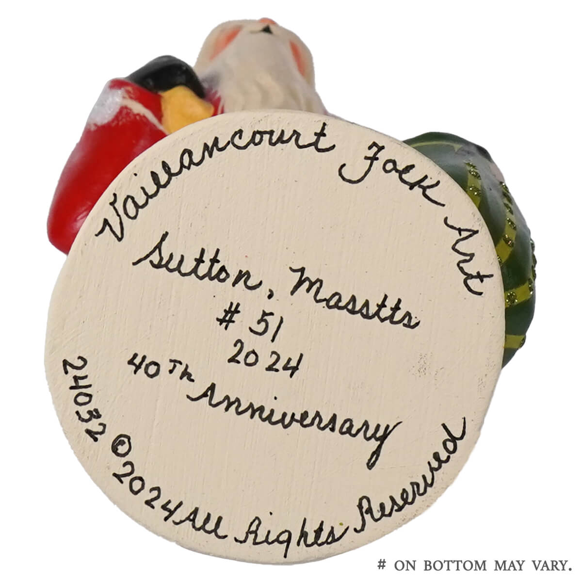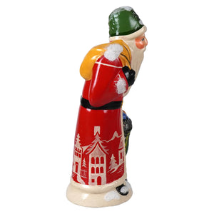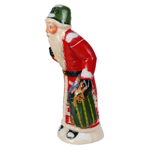 Celebrate four decades of festive finesse with the 40th Anniversary-2024 Red Village Scene Santa Bearing Gifts by Vaillancourt—a chalkware creation so charming, even the elves are jealous. This hand-painted holiday heavyweight is suited up in a rich red coat, accented by a quaint village scene wrapped around the hem like a wintry storybook come to life. Tiny houses, snowy rooftops, and peaceful lanes—Santa’s not just delivering gifts, he’s wearing the whole neighborhood.
