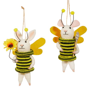 5.5" Mouse & Bunny Bee Ornaments Set/2