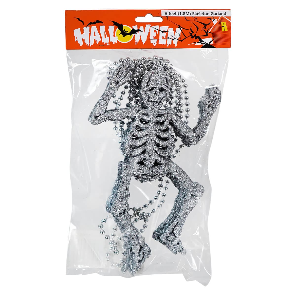 Easy to hang and lightweight, the 6' Silver Skeleton Garland is a hassle-free way to amplify your Halloween atmosphere. Whether you're hosting a haunted gathering or simply decorating for the trick-or-treaters, this garland ensures your space is dressed to impress. Add it to your Halloween collection and let these gleeful ghouls bring their glittering spirit to your celebrations.