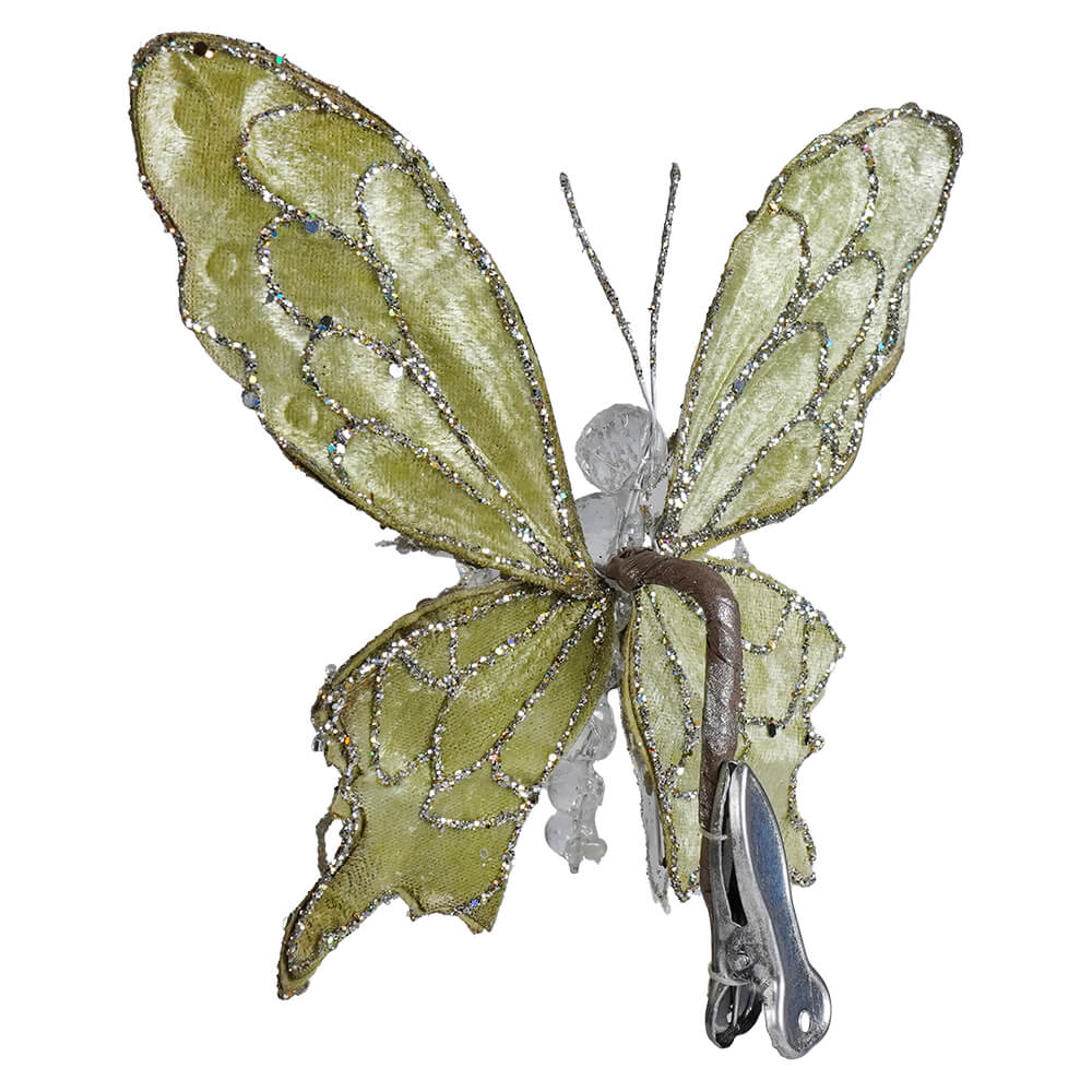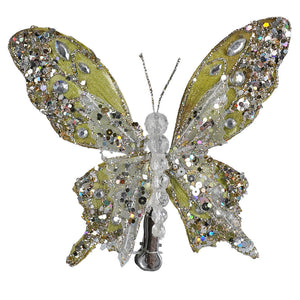 7" Jeweled & Glittered Green Butterfly Clip-On Ornament