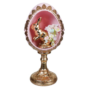 Give your Easter display a touch of elegance with the 7" Pink & Gold Bunny Egg Pedestal by Regency International—a decoration that’s as classy as it is festive! This stunning piece features a soft pink egg as the main attraction, cradling a golden bunny at its center, surrounded by delicate floral details. Sitting atop a gleaming gold base, it’s the perfect blend of springtime charm and gilded glamour.