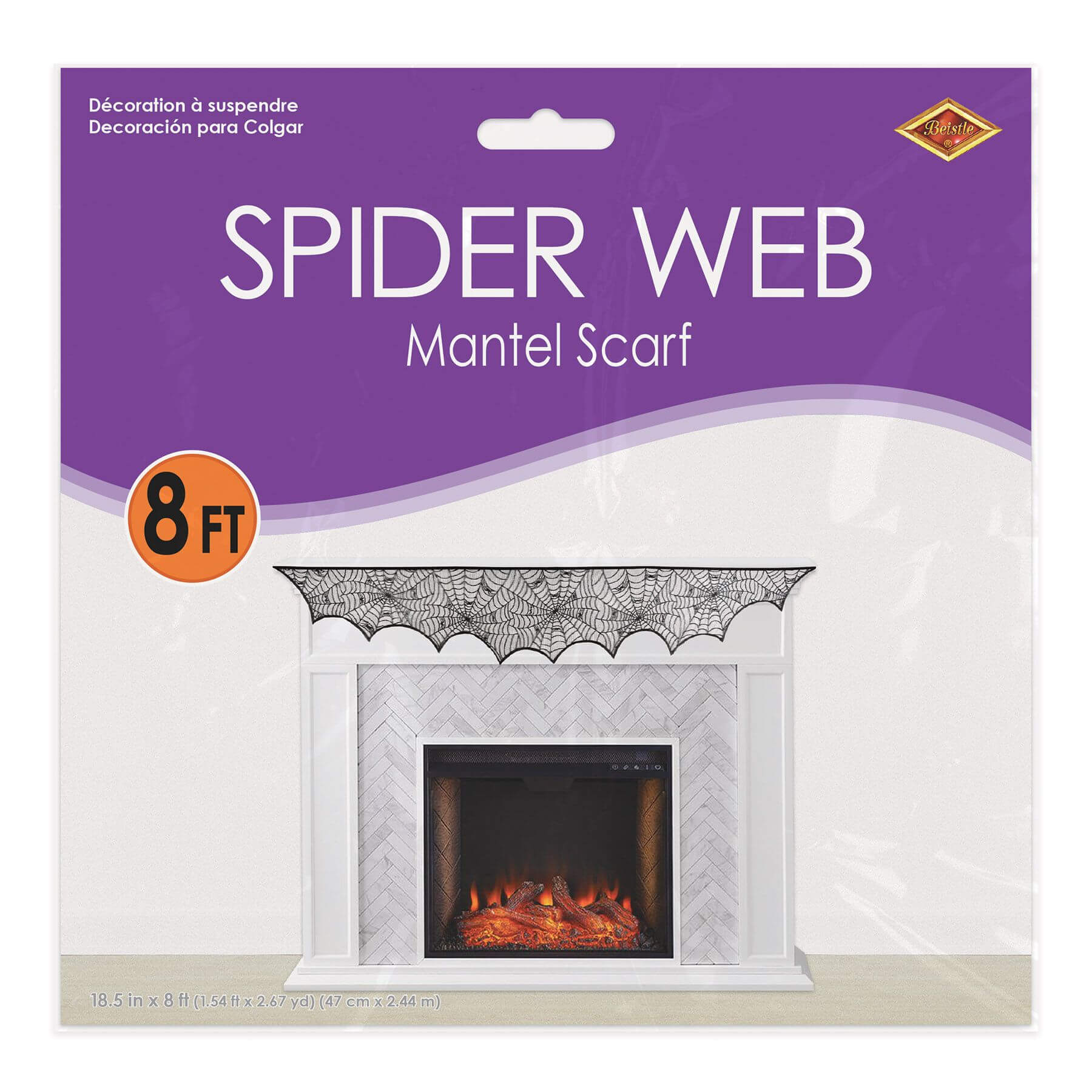 It appears that a spider became ambitious and thought that your fireplace deserved the best of its efforts. This 8-foot Spider Web Mantel Scarf's striking design and lightweight material provide structure and drama to Halloween décor. With its intricate web designs and refined edges, it may be effortlessly draped over buffet surfaces, shelves, console tables, and mantels. The pointed hemline gives it a jagged, eerie silhouette that fits right into October plans, or any event that leans into moody decor.