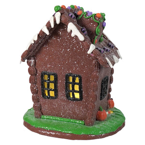Treat your Halloween décor to a sugar rush of spooky charm with the 9.5" Lighted Halloween Gingerbread House by RAZ Imports — a deliciously haunted hideaway where candy meets creep. This confection-inspired cottage is frosted in frightful fun, featuring a brown cookie-textured exterior trimmed with orange, black, purple, and yellow accents that practically glow under its eerie light.