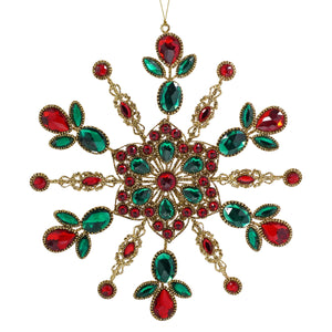 9.5" Red, Green & Gold Jeweled Snowflake Ornament