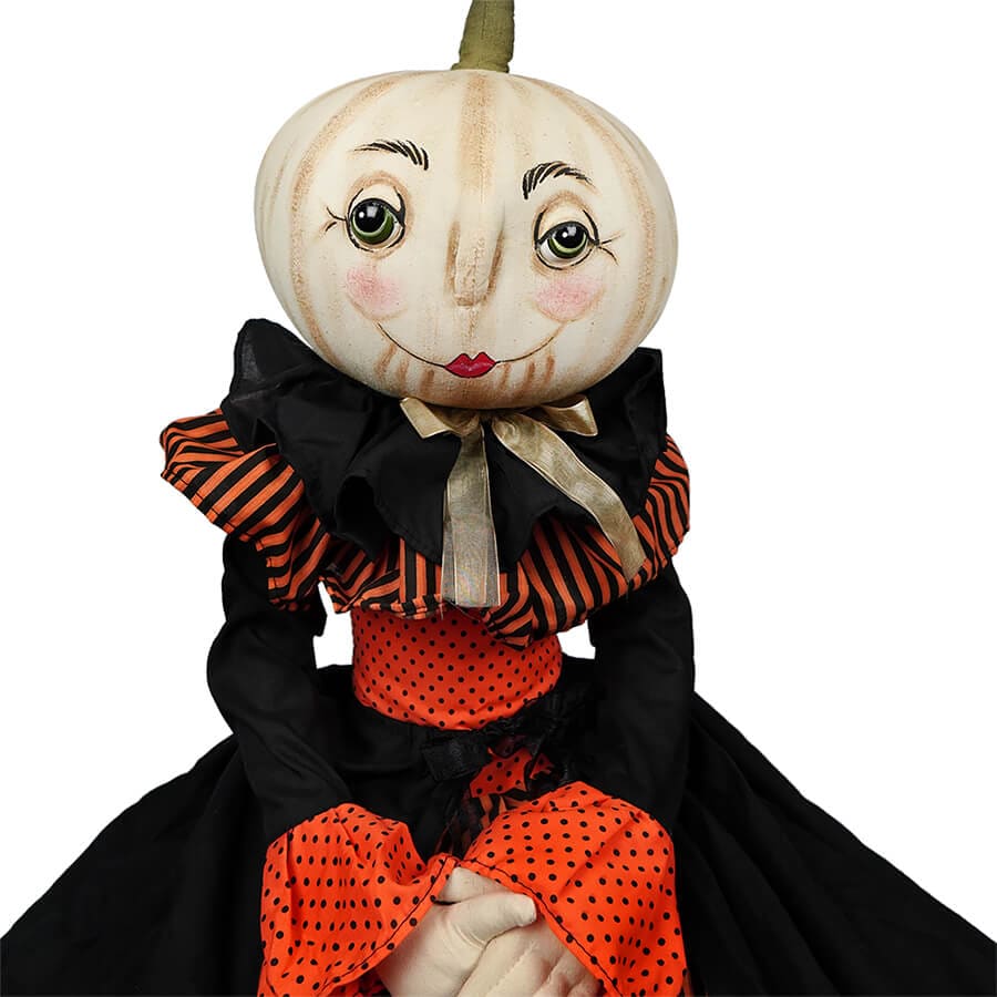 Let's meet Amala, the elegant stuffed fabric doll crafted to add a touch of sophistication to your Halloween decor. This figure, born from the creative genius of Joe Spencer, stands at an imposing 48 inches. She radiates refined charm and a hint of intrigue, clothed in an ornate Halloween gown that whispers of grand celebrations and the dance of autumn leaves.