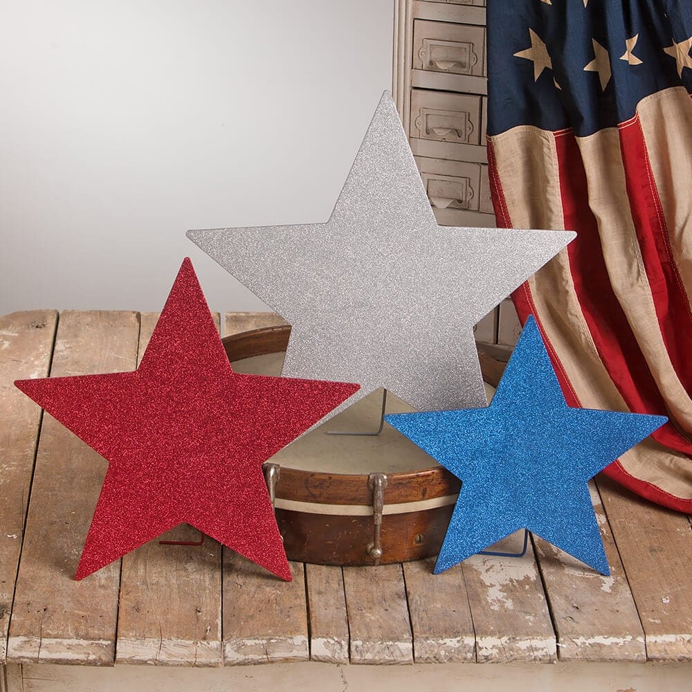 Together, they balance each other well and work in both casual and more curated arrangements. Whether they’re part of a holiday setup or adding seasonal color to a shelf or entryway, these stars hold their own. Perfect for quick decorating or rounding out a larger patriotic look, this set offers a straightforward way to add impact, glitter and all, wherever you place them.