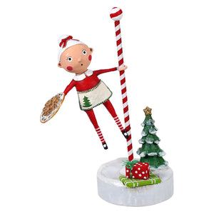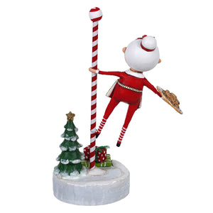Mrs. Claus is serving up holiday cheer with a side of acrobatics in the Baking Spirits Bright figure by Lori Mitchell! Clinging playfully to a candy cane-striped pole, she expertly balances a plate of freshly baked cookies in one hand while keeping a firm grip with the other. With rosy cheeks and a twinkle in her eye, she looks like she’s having just as much fun as Santa on Christmas Eve—though she’d argue her job is even more important. After all, what’s Christmas without cookies?