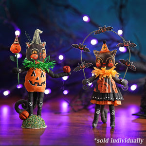 Bat Juggling Cat Girl by Vintage by Crystal & Johanna Parker steals the spotlight with her spooky stage act. Balancing five fluttering bats mid-air, she proves that Halloween magic comes with a touch of feline flair. One glance at her mischievous grin and you’ll know this cat has more than a few tricks up her sleeve.