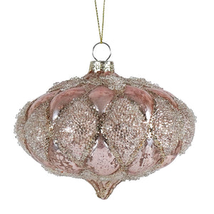 Beaded Pink Mercury Glass Onion Hobnail Ornament