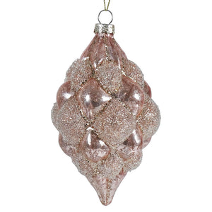 Beaded Pink Mercury Glass Teardrop Hobnail Ornament