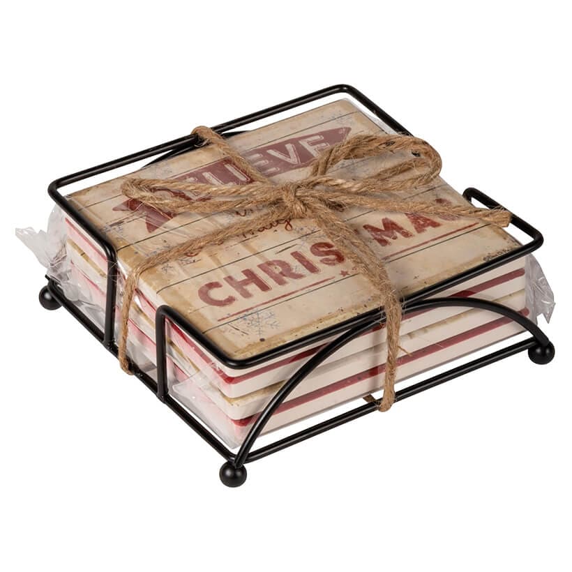 Gather around, grab your favorite holiday drink, and let the Believe Coaster Set add a dash of festive cheer to your table setting. This charming set of four stone coasters, complete with a handy metal holder, is the creation of artist Dan DiPaolo for Primitives by Kathy. It's a simple yet delightful way to bring the essence of Christmas into your home, ensuring that every time you lay down your mug or glass, you're reminded of the joy and warmth of the season.