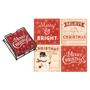 Featuring rustic designs that echo the character of aged wood, these coasters possess a vintage charm that can make any space feel like a cozy winter cabin. Each coaster bears a message or image that's synonymous with holiday joy — from an amiable snowman to the timeless wish of 'Merry & Bright.' They are sure to stir up conversations and compliments from guests enjoying their holiday libations.
